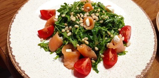Руккола с лососем,с сыром рикотта и кедровым орехом