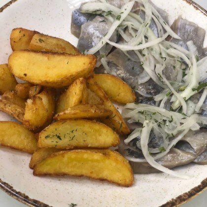 Селедочка с луком и запеченым картофелем