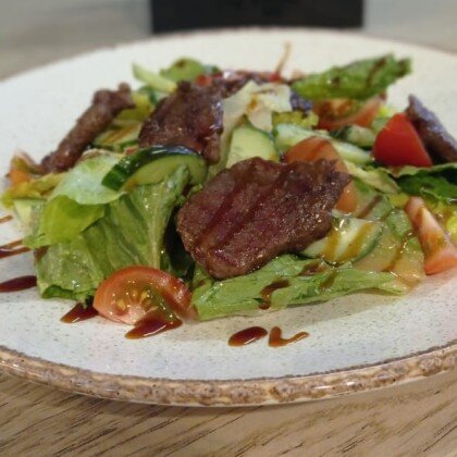 Теплый салат с говядиной